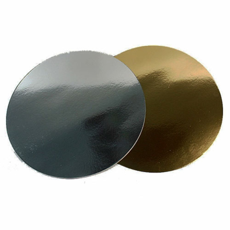 Підкладка під торт D 14 - кругла, підсилена, ламінована підставка під кондитерські вироби. Виготовлена з металізованого мікрогофрокартону, вологостійка, витримує пряме попадання рідини на неї. Підкладка має дві сторони колір золото/срібло.