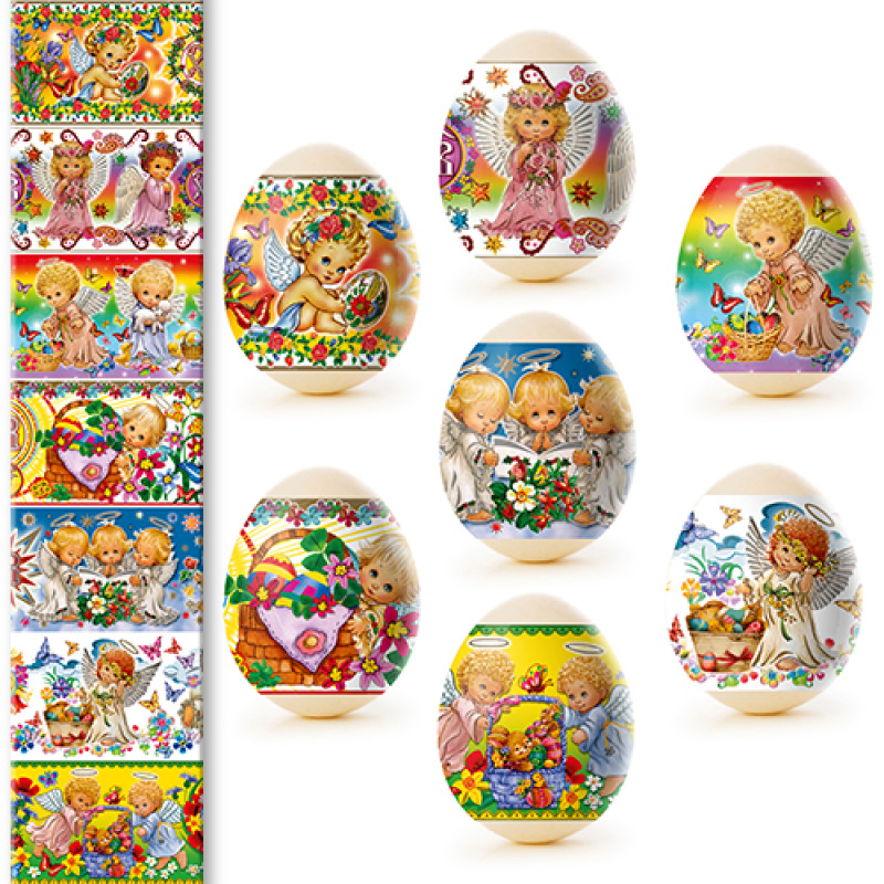 Стрічка "Ангелочки" - етикетка для прикрашання великодніх яєць, яка виготовлена з термозбіжної плівки. Виробники попіклувалися про збереження вашого часу, процес прикрашання доволі простий. Мальованки стануть особливою прикрасою великоднього столу, а яскраві зображення янголят порадують і дорослийх, і дітей.