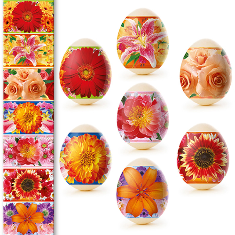 Стрічка "Великодній віночок" - етикетка для декорування великодніх яєць виготовлена з термозбіжної плівки. Декоративна плівка проста у в икористанні, тому значно економить ваш час, а ще й прикрашає великодній кошик за рахунок яскравого квіткового дизайну.